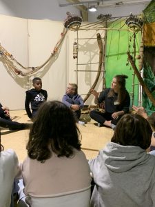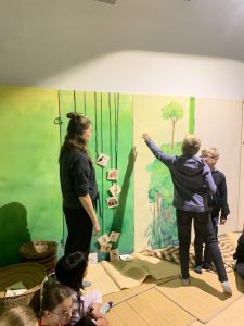 Beim letzten und kreativen Teil unserer Atelierreihe sollten die Kinder sich zusammen mit der Künstlerin Dagmar Weitze ihre ideale Zukunft ausmalen und künstlerisch darstellen. Basierend auf dem Gelernten haben sie sich Gedanken darüber gemacht wie und wo sie gemeinsam als Klasse leben wollen. Was braucht man wirklich? Wie funktioniert die Nahrungs- bzw. Energieversorgung? Welche Regeln gibt es beim Zusammenleben? Mit ganz viel Begeisterung und Kreativität haben die Klassen kleine Kunstwerke erschaffen. Interessante Ideen wie solarbetriebene Boote oder Gemeinschaftsräume in Form von Baumhäusern sind aus alten Stoffresten, Papier und anderem Recyclingmaterial entstanden.