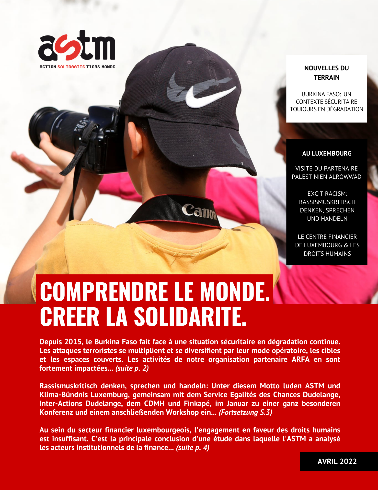 La première édition de l’année 2022 de notre magazine « Comprendre le Monde. Créer la Solidarité » est désormais disponible en ligne. Apprenez-en plus sur nos organisations partenaires et sur notre travail réalisé au Luxembourg!