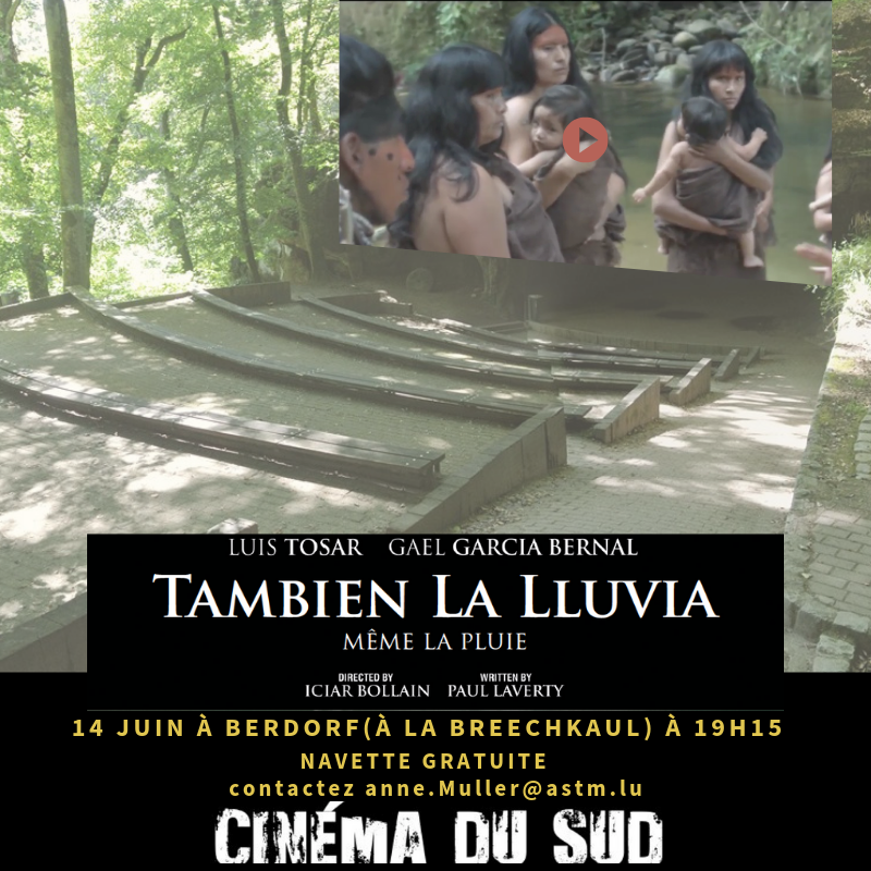- Mit Tambien la Lluvia beginnt das Festival am 14. Juni hochaktuell in der Breechkaul in Berdorf mit Open-Air Kino: Der Film erzählt anhand der Privatisierung von Trinkwasser vom Aufeinanderprallen knallharter wirtschaftlicher Interessen multinationaler Konzerne mit den Grundrechten der indigenen Bevölkerung Boliviens. Ein gratis Busshuttle ab Luxemburg-Stadt wird angeboten.