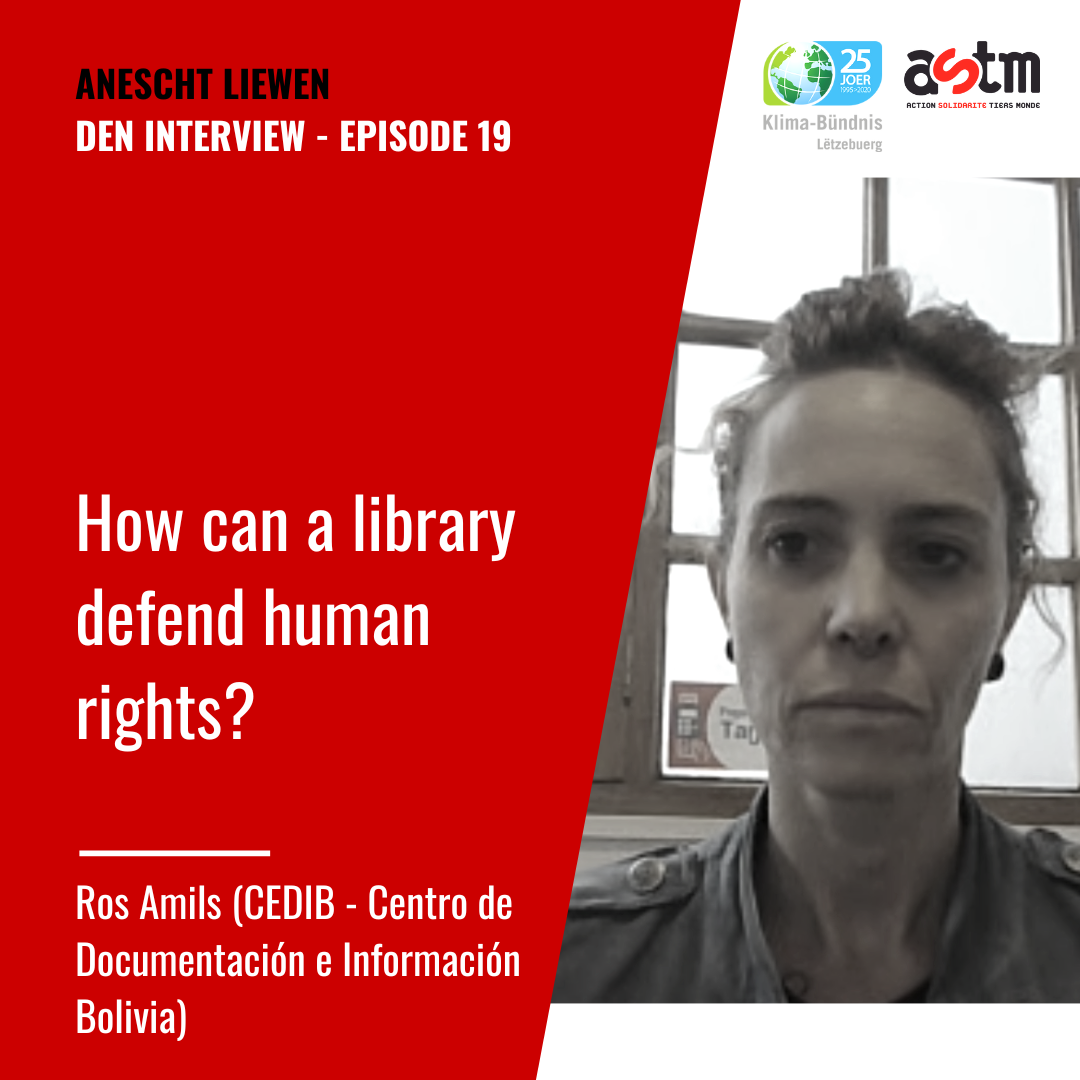 Mam Ros Amils vum Dokumentatiounszentrum CEDIB a Bolivien iwwert de Roll vun enger Bibliothéik an enger Gesellschaft. Wéi huet des sech verännert? Firwat kann eng Bibliothéik zu enger Gefor fir d’Machthaber ginn? Wéi ass eng Bibliothéik a Bolivien mat eis hei zu Lëtzebuerg verbonnen?